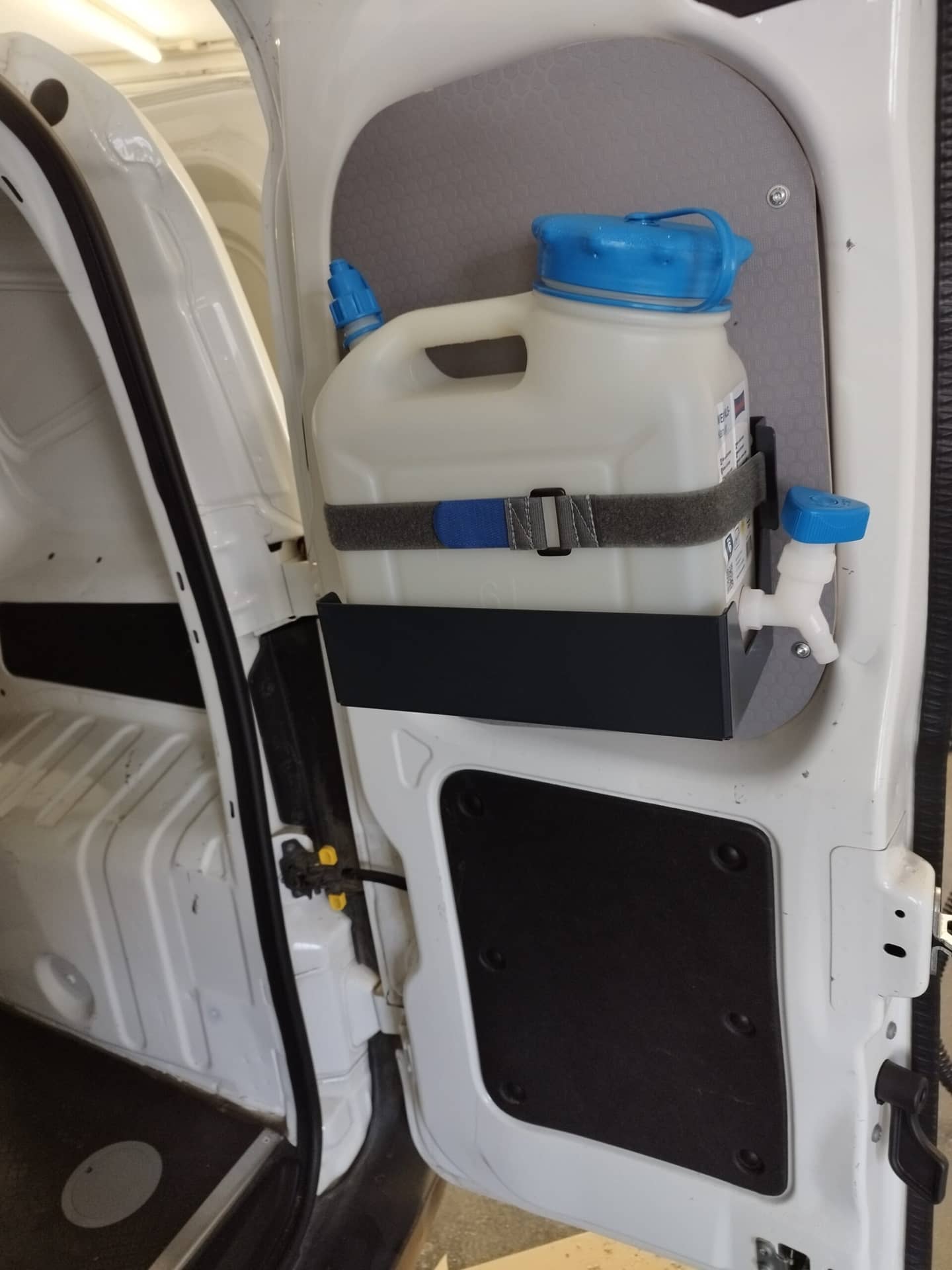 Auch ein kompaktes Fahrzeug wie dieser Fiat Fiorino der sauber+stark GmbH lässt sich zu einem vollwertigen Begleiter im Arbeitsalltag ausbauen. Für den Einsatz in der Schädlingsbekämpfung haben wir an den Flügeltüren einen Kanisterhalter sowie einen Putzpapierhalter montiert – praktisch zum Händewaschen und Reinigen direkt vor Ort.